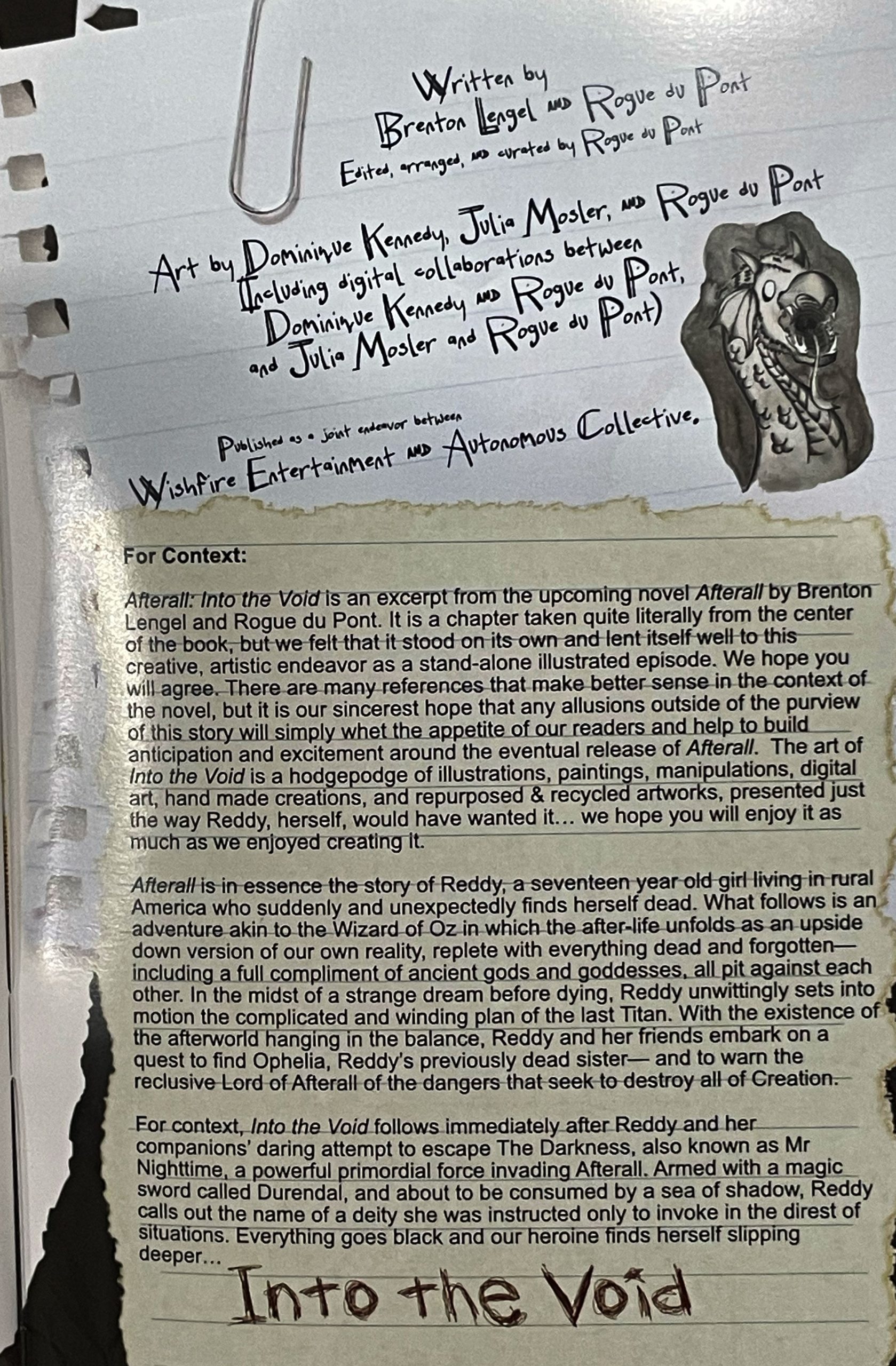 “Afterall : Into the Void” is an excerpt from the upcoming novel by Rogue du Pont of The Crüxshadows and Brenton Lengel.